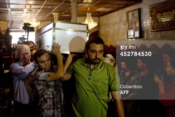 Το φέρετρο βάσταξαν στους ώμους τους 2 μουσουλμάνοι και 2 χριστιανοί , που μαζί μοιράζονταν την σκέπη του Αγίου Πορφυρίου Γάζας. . Ένα μέλος της ενορίας πήρε το μικρόφωνο στην κηδεία κραυγάζοντας με θυμό: