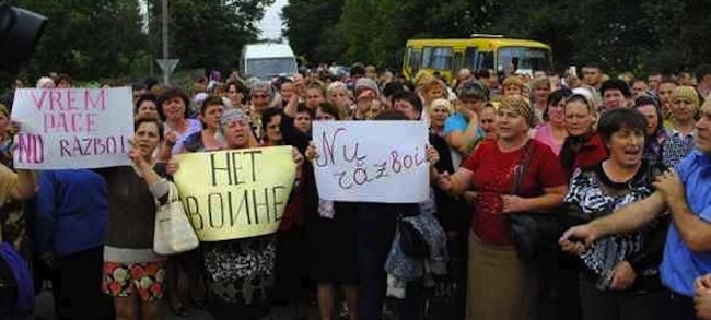 Οικογένειες με τα παιδιά τους αλλά και αυτόνομοι νέοι συγκεντρώθηκαν γύρω από τους βασικούς αυτοκινητόδρομους για να διαδηλώσουν ενάντια στην γενική επιστράτευση του καθεστώτος Ποροσένικο.Bασικά συνθήματα:
