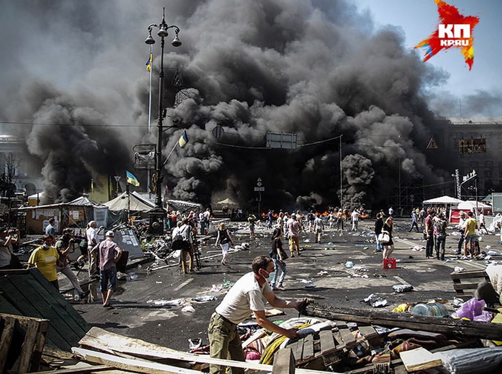 Από πλευράς αρχών ασφαλείας, που κάποτε αντιπροσωπεύονταν από την Berkut, αυτή τη φορά εξέδραμαν τα τάγματα “Κίεβο 1” και “Κίεβο 2” αλλά και συμβατική αστυνομία.Πριν την επιχείρηση εκκένωσης της πλατείας Ανεξαρτησίας, είχαν αναφερθεί καύσεις ελαστικών αλλά και μια έκρηξη. Πυροσβεστικά οχήματα και γερανοφόρα φορτηγά επιχειρούσαν να σβήσουν τις φωτιές και να διαλύσουν αντίσκηνα και κατασκευές. Συγκρούσεις ξέσπασαν και στους δρόμους περιμετρικά της πλατείας ενώ μάρτυρες είπαν ότι άκουσαν πολλές βολές.