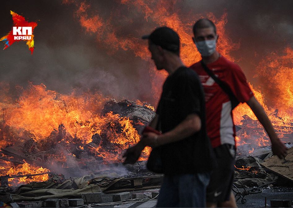 Το μετρό του Κιέβου έκλεισε για λόγους ασφαλείας, ενώ η ατμόσφαιρα ήταν αποπνικτική από τα μαύρα σύννεφα καπνού στις υψηλές καλοκαιρινές θερμοκρασίες.