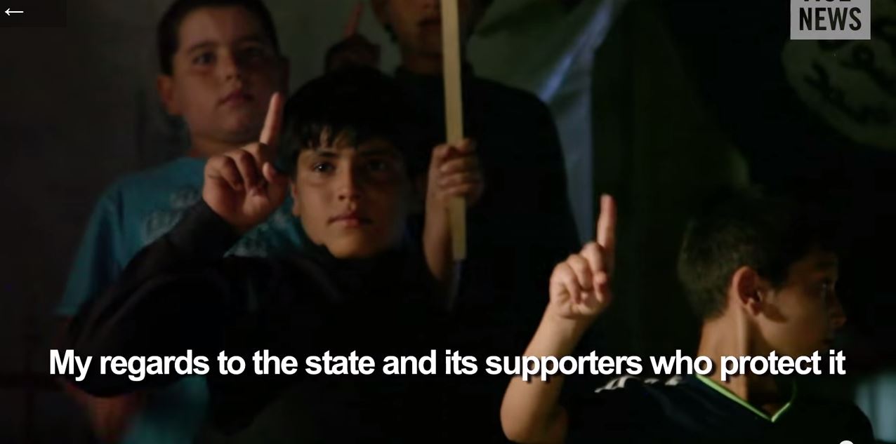 Μπροστά στη δημοσιογραφική κάμερα ρωτάει το παιδί, “αν προτιμάει να γίνει τζιχαντιστής ή μάρτυρας επίθεσης αυτοκτονίας”. Του ζητάει πιεστικά απαντήσεις σε ερωτήσεις του τύπου: “Γιατί πρέπει να σκοτώνουμε τους στρατιώτες στη Συρία και όλους τους Ευρωπαίους;“. Καθώς το παιδί δείχνει να κομπιάζει τελικά ο πατέρας απαντάει στη θέση του “γιατί είναι άπιστοι”.