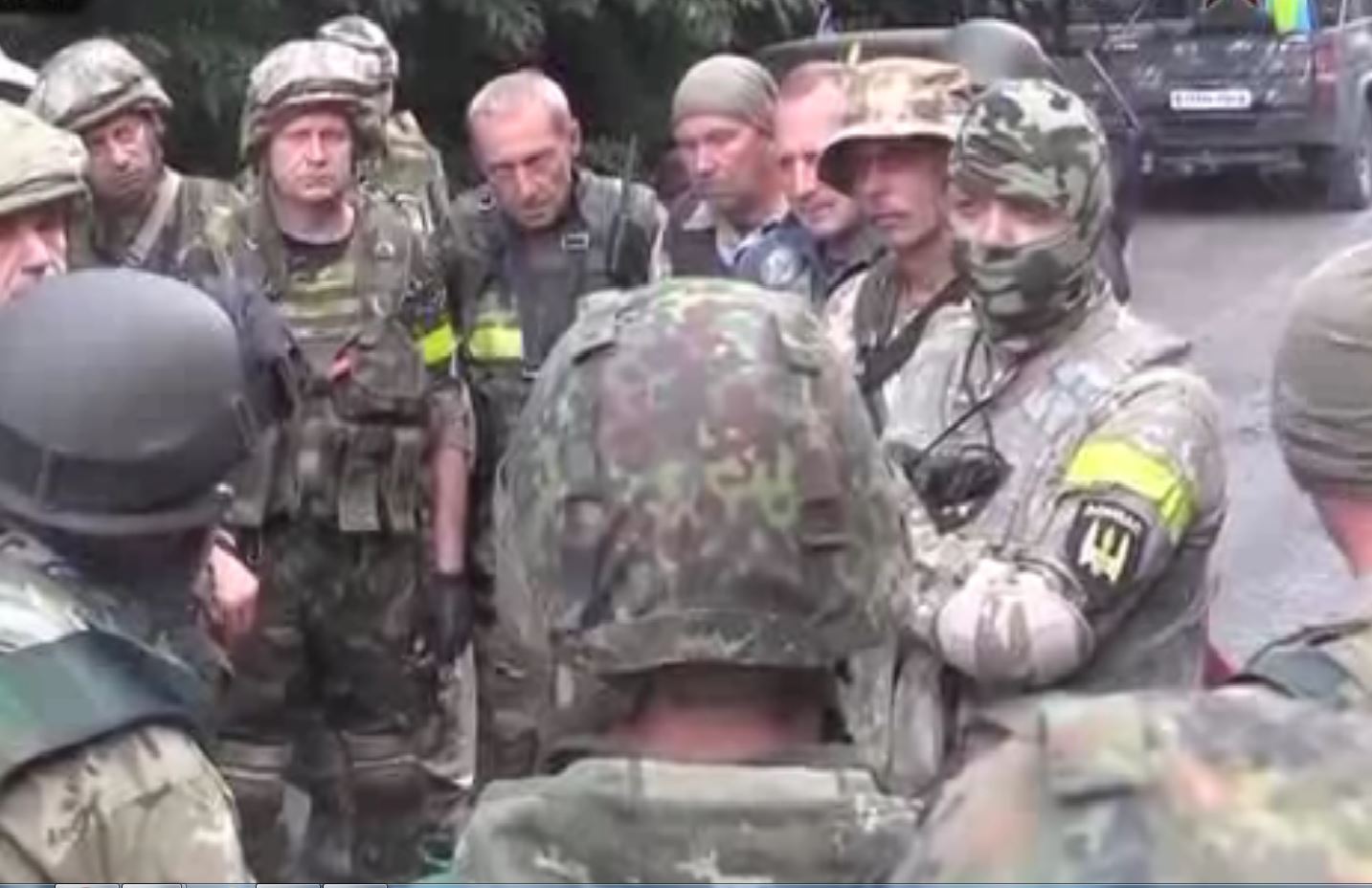 Στο σχετικό βίντεο βλέπουμε αρχικά τις οδηγίες που δίνει στο στράτευμα ο διοικητής του τάγματος του Donbass, γνωστός για τη θηριωδία του, Symeon Sementchenko.
