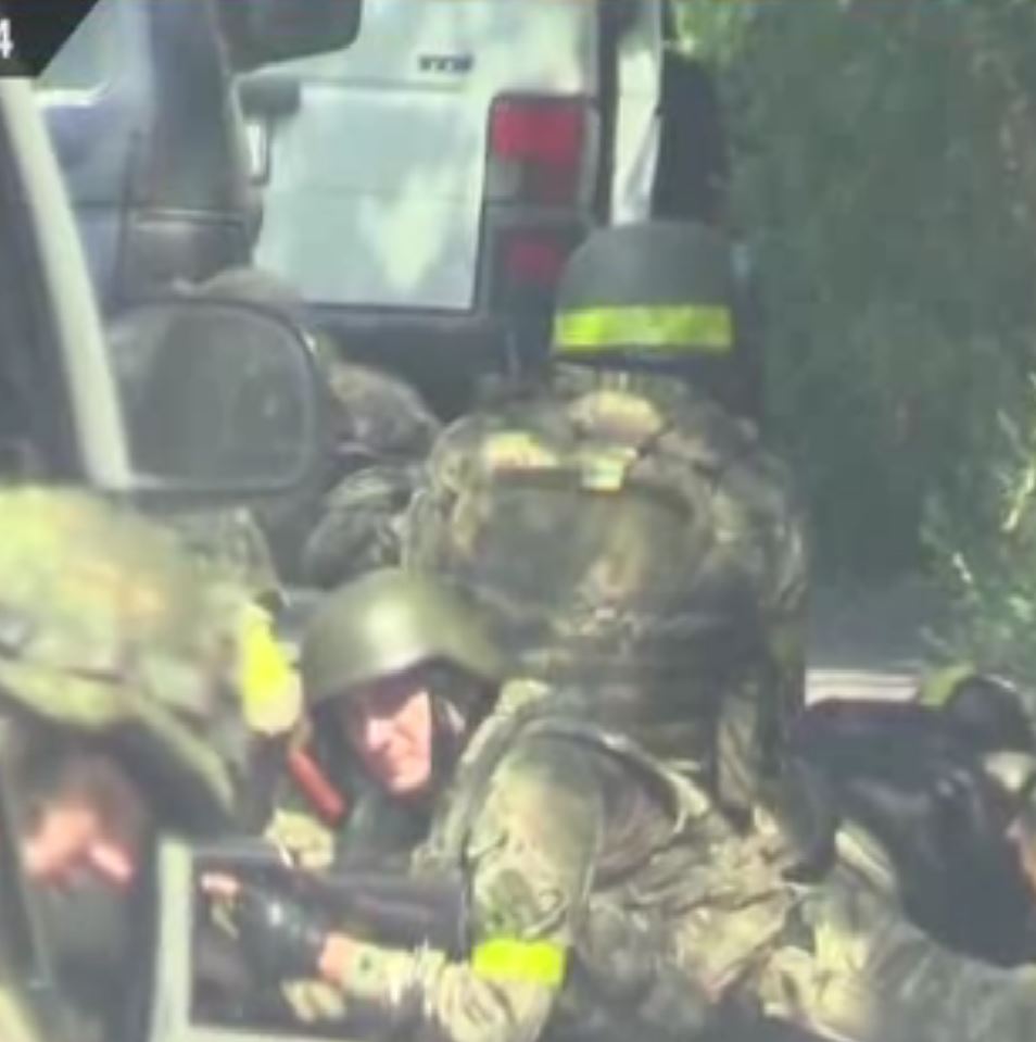 Τα πλάνα δείχνουν να ανοίγουν πυρ οι ουκρανοί στρατιώτες μαζί με την Εθνική Φρουρά. Η πολιτοφυλακή απαντά με όλμους και βαριά πολυβόλα. Στη συνέχεια, ξεκινάνε ανταλλαγές πυροβολισμών με αυτόματα. Λίγα λεπτά αργότερα, βλέπουμε τραυματίες από την ουκρανική πλευρά, και στο τέλος το τάγμα του «Donbass» αναγκάζεται να υποχωρήσει, έχοντας 4 νεκρούς και 7 τραυματίες.