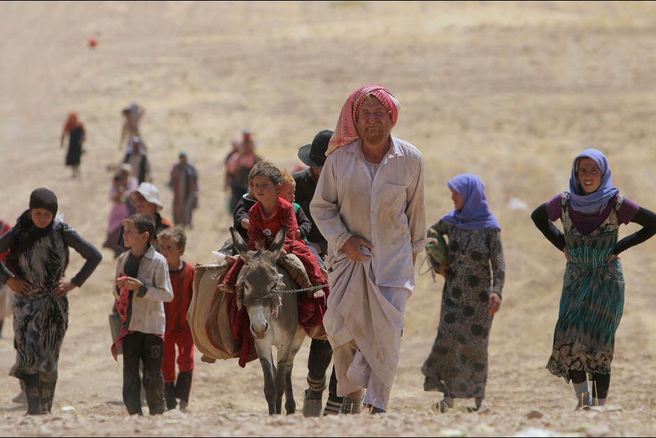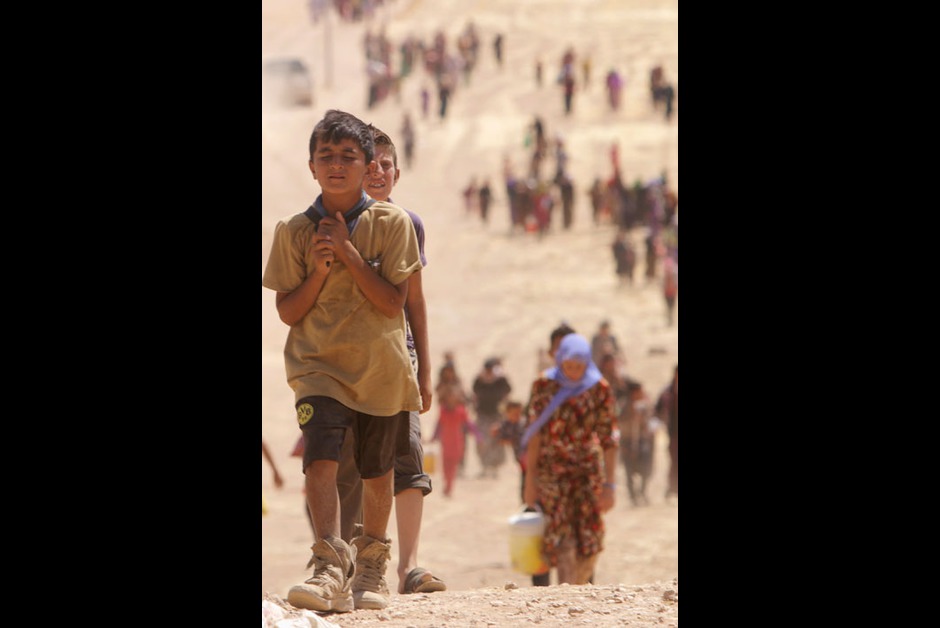 Θυμίζει υπερπαραγωγή του Χόλλυγουντ και όμως δεν είναι…Στους 45°C κάτω από τον εξοντωτικό ήλιο και ωστόσο συνεχίζουν. Προορισμός η Συρία …….Δεν θα μπορούσαν ποτέ να σταματήσουν να περπατάνε . Τρομοκρατημένοι οι Yézidis του Β Ιράκ ειδικότερα μετά την κατάληψη της πόλης Singar από τους τζιχαντιστές του Ισλαμικού Κράτους επιδίδονται ασταμάτητα στην μεγάλη τους έξοδο.