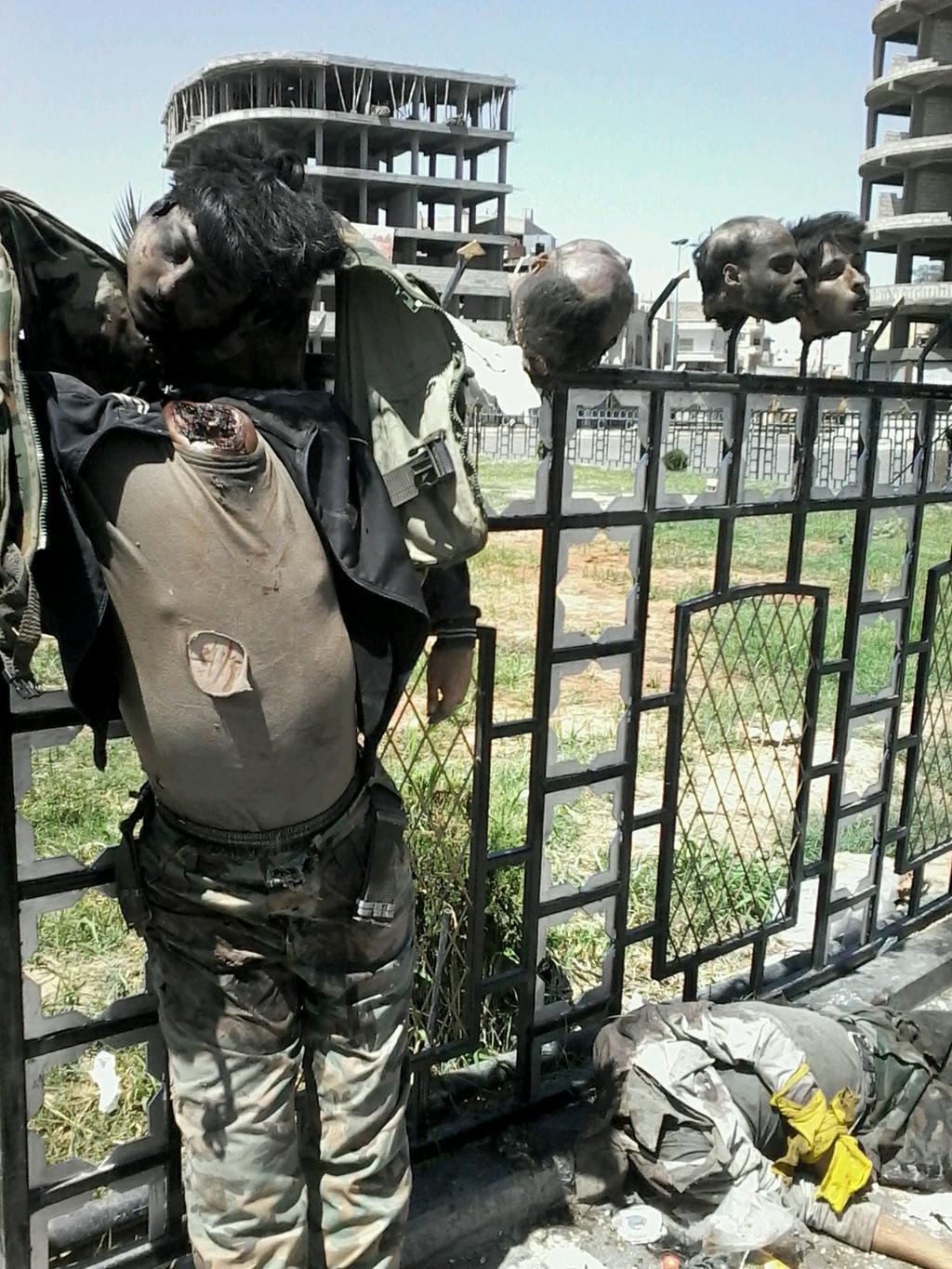 Στη Deir Ezzor το Ισλαμικό Κράτος σταύρωσε δημόσια άλλους 3 πολίτες με την κατηγορία ότι ήταν συνεργάτες των “Nusayris” (Nuṣayrī δηλ. των αλαουιτών.Οι εικόνες αναρτήθηκαν σήμερα.