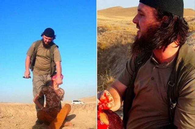 (Στη φωτογραφία ο Lavdim Muhaxheri μέλος του Iσλαμικού Κράτους προερχόμενος από το Κοσσυφοπέδιο ενώ αποκεφαλίζει 19χρονο αγόρι στη Συρία. Διέπραξε επίσης πολυάριθμες θηριωδίες στη Συρία και το Ιράκ. Το κουρδικό κανάλι του Ιράκ πρόβαλε τον θάνατό του.)