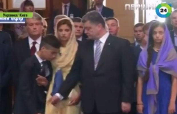 Στην παρουσία του όλα καταρρέουν, παιδικοί σταθμοί, πολυκατοικίες,νοσοκομεία, μουσεία, στρατιώτες, πολίτες και πρόσφατα και ο γιος του. Ο 13χρονος γιος του Ποροσένκο, Michael αισθάνθηκε αδιαθεσία και τελικά έχασε τις αισθήσεις του. Σωριάστηκε κατά την διάρκεια ακολουθίας για την επέτειο της Ημέρας της Σημαίας. Το επεισόδιο συνέβη στις 23 Αυγούστου στον καθεδρικό της Αγίας Σοφίας στο Κιέβο. Ο Ποροσένκο ο αιμοσταγής δικτάτορας της Ουκρανίας που ευθύνεται για τον θάνατο χιλιάδων πολιτών στην Αν. Ουκρανία προσήλθε ως καλός φαρισαίος να προσευχηθεί για την ημέρα της επετείου της ουκρανικής σημαίας συνοδευόμενος από τη γυναίκα του Μαρίνα και τα παιδιά του. Ο έντιμος οικογενειάρχης που έκλεισε χιλιάδες σπίτια ουκρανών (στέλνοντας τα παιδιά τους στο μέτωπο) ή ρωσόφωνων.