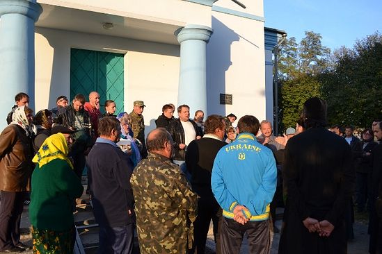 Τα ίδια εξτρεμιστικά στοιχεία επιτέθηκαν στον εφημέριο του ναού Anatoly Mikhnevich, του άρπαξαν το ιερατικό του καπέλο ενώ ο π. Anatoly ειδοποίησε την αστυνομία η οποία στη συνέχεια και έθεσε φύλακες στις πόρτες του ναού. Ο τοπικός επίσκοπος κλήρος της περιοχής και πιστοί κατέφθασαν στο ναό. Οι βάνδαλοι οι οποίοι δεν είχαν καμία σχέση με την εκκλησία απαίτησαν την υαπαγωγή τόσο του ιερέα όσο και της εκκλησίας στο ψευδεπίγραφο και σχισματικό αυτοανακηρυχθέν Πατριαρχείο του Κιέβου.Η όλη επίθεση διαδραματίστηκε παρουσία εκπροσώπων αυτού του σχισμαστικού εκτρώματος οι οποίοι και παρέμεναν επιδεικτικά θεατές.