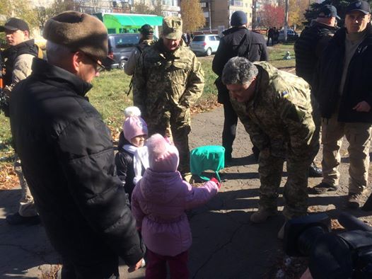 O Petro Poroshenko έφθασε στο Donbass την ημέρα των κοινοβουλευτικών εκλογών στην Ουκρανία με στρατιωτικό ελικόπτερο. Ο πρόεδρος φέρει στρατιωτική στολή και ανέβασε τις φωτογραφίες από την γκανγκστερική του απόβαση στο Twitter και στη σελίδα του στο facebook.Στα κοινωνικά δίκτυα δηλώνει ότι πήγε για να εγγυηθεί την έκφραση της ελεύθερης βούλησης του λαού και να επιθεωρήσει τα στρατεύματά του.