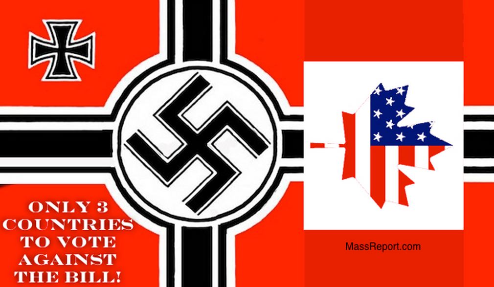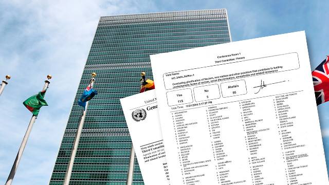 Η Τρίτη Επιτροπή της Γενικής Συνέλευσης των Ηνωμένων Εθνών ανέλαβε με πρωτοβουλία 31 χωρών, να διεξαγάγει ψήφισμα κατά των εκδηλώσεων εγκωμιαμού του Νεοναζισμού και των Χιτλερικών συμβόλων και πράξεων. Σύμφωνα με το Itar-tas η πρωτοβουλία ανήκει στη Ρωσική Ομοσπονδία. Στην ψηφοφορία που έλαβε χώρα στις 21.11.2014 μόνο τρεις χώρες ψήφισαν κατά του ψηφίσματος: Ουκρανία, ΗΠΑ και Καναδάς.