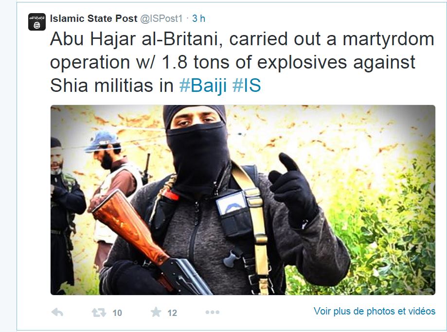 Ένας Βρετανός , μέλος του Ισλαμικού Κράτους ανατινάχθηκε στο Ιράκ κατά τη διάρκεια μάχης για τον έλεγχο του μεγαλύτερου διυλιστηρίου πετρελαίου στη χώρα. Ο 32χρονος ισλαμιστής καμικάζι από το Derby, επονομαζόμενος “Abu Hajar al-Britani”, σκότωσε πολλούς Ιρακινούς στρατιώτες και κατέστρεψε τον πολεμικό εξοπλισμό τους, χρησιμοποιώντας την απίστευτη ποσότητα εκρηκτικών των 2000 λιβρών .