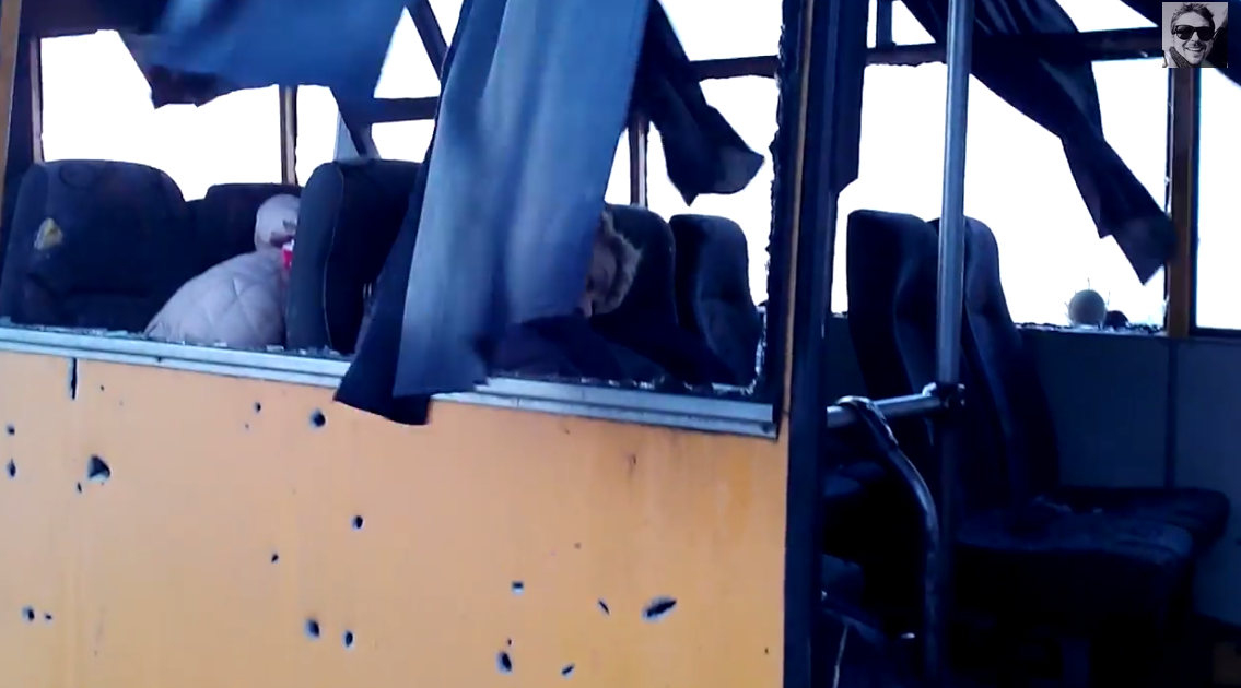 O Δεξιός Τομέας 10΄πριν φορτώσει το έγκλημα στους ρωσόφωνους πανηγυρίζει:χτυπήθηκε λεωφορείο με τρομοκράτες. 15 νεκροί και 3 αιχμάλωτοι. Βέβαια στη συνέχεια όταν τα θύματα αποδείχτηκε ότι ήταν γυναίκες και άλλοι πολίτες ανασκεύασαν και κατηγορούσαν την άλλη πλευρά.O Poroshenko χρεώνει την ενέργεια στους ρωσογενείς και δηλώνει ότι αύριο θα ανακοινώσει πολεμική κινητοποίηση διακαιώνοντας τον Λαβρόφ που είχε προειδοποιήσει ότι επίκειται.Η προβοκάτσια του “μαλαισιανού” λεωφορείου είναι η αφορμή που ήθελε..