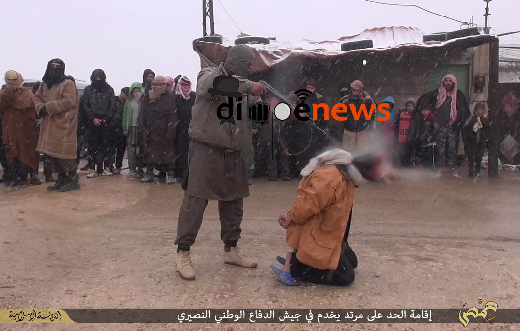 Η ψευδεπίγραφη ισλαμιστική αστυνομία τόσο αυθεντική όσο και η μετριοπαθής επινοημένη συριακή αντιπολίτευση εφάρμοσε την απόφαση Σαριακού Δικαστηρίου στην επαρχία της Χομς στη Συρία για την εκτέλεση ατόμου.