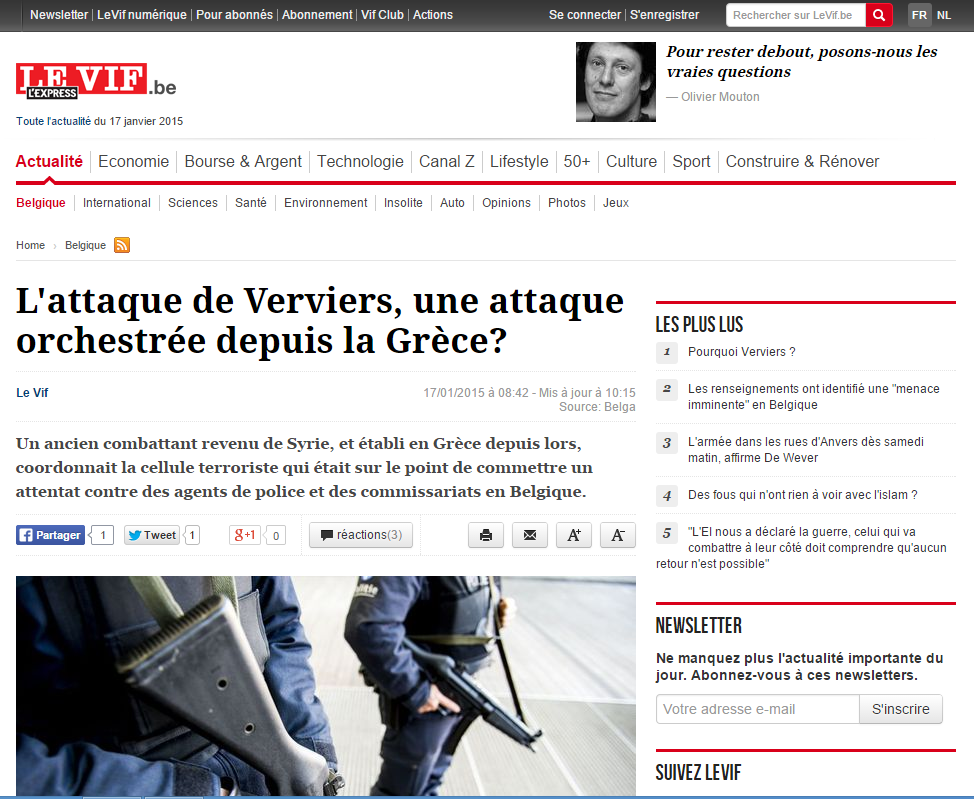 ( Le Vif, Belga 17/01/2015)