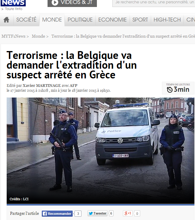 Την Κυριακή προέκυψε ότι ένας από τους υπόπτους που συνελήφθηκαν στην Αθήνα θα μπορούσε να έχει σχέση με το τζιχαντσιστικό δίκτυο του Verviers.Η ομοσπονδιακή εισαγγελία θα ζητήσει την έκδοσή του ανακοίνωσε ένας εκπρόσωπος τύπου της εισαγγελίας το βράδυ της Κυριακής.