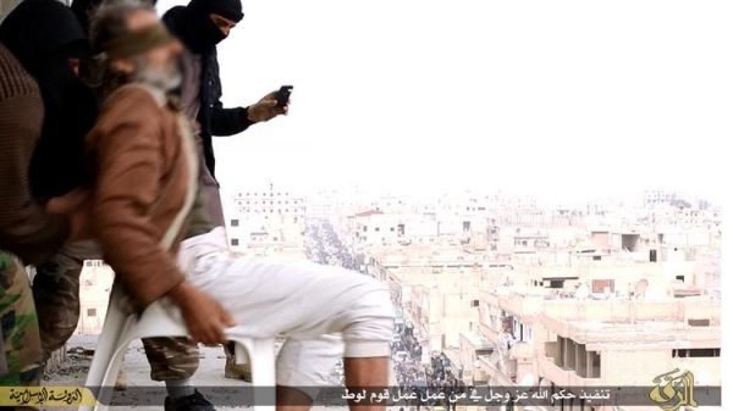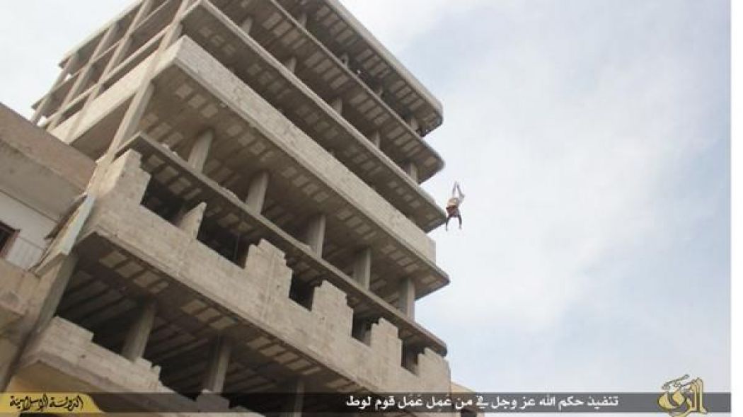 Σε λογαριασμό Twitter του «Ισλαμικού Κράτους” δημοσιοποιήθηκαν και νέες εικόνες από την εφαρμογή του «νόμου του Θεού για την πράξη των σοδομιστών ” όπως ενδεικτικά αναφέρει το συνοδευτικό μήνυμα ανάρτησης.Η ISIS προχώρησε και σε νέα εκτέλεση ατόμου που κατηγορείται για ομοφυλοφιλία .Εφαρμόζοντας τη σαρία τον πετούν από πολυόροφο κτίριο.Δεν διευκρινίζεται ο τόπος όπου έλαβε χώρα το γεγονός.Πάντως προηγούμενες εκετλέσεις έγιναν στο Ιράκ.