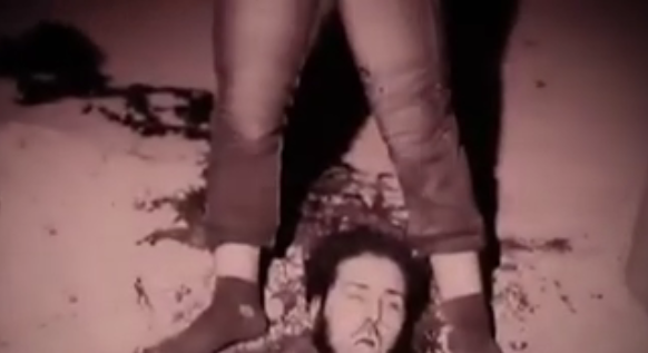 Στο τέλος του βίντεο ένας μασκοφόρος του Ισλαμικού Κράτους ντυμένος στα μαύρα τον αποκεφαλίζει με μαχαίρι.