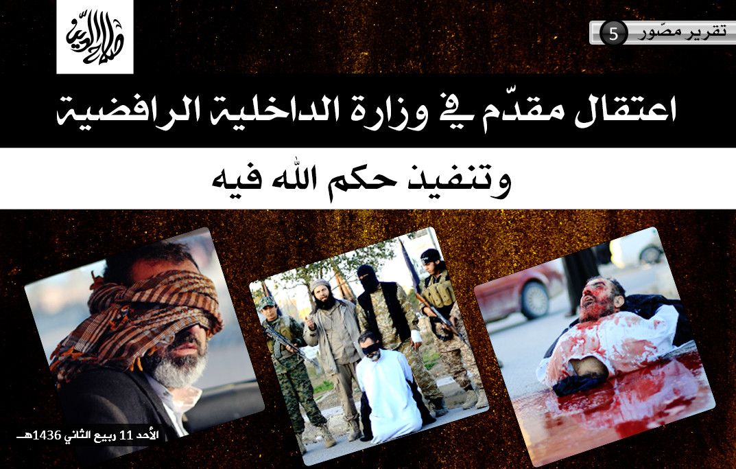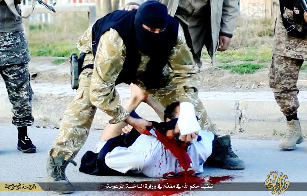 Το Ισλαμικό Κράτος διακινεί στα δίκτυά του σήμερα και νέους τελετουργικούς σφαγιασμούς στρατιωτικών. Δεν διευκρινίζεται αν είναι κούρδοι αν και τις τελευταίες ημέρες έχει εντείνει τις εκτλέσεις peshmerga στο Ιράκ ως αντίποινα προφανώς για την ήττα στο Κομπάνι.