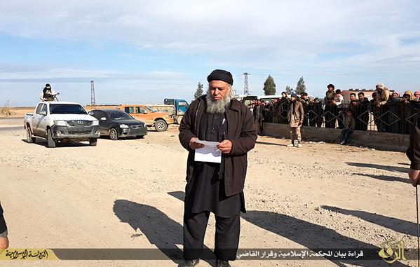 To Iσλαμικό Κράτος με την κατηγορία της άσκησης της μαγείας αποκεφάλισε σε δυτική περιοχή της Ράκκα έναν άνδρα.Ο δήμιος είναι μασκοφόρος.Το θύμα είναι πισθάγκωνα δεμένο και το κεφάλι του έχει τεθεί σε κούτσουρο για να διευκολυνθεί ο αποκεφαλιστής.Η εκτέλεση είναι δημόσια.Παρακολουθούν και μικρά παιδιά.Προηγήθηκε σαριακή δίκη και κάποιος αναγνώνει την απόφαση.B9QmthwCcAEfSav