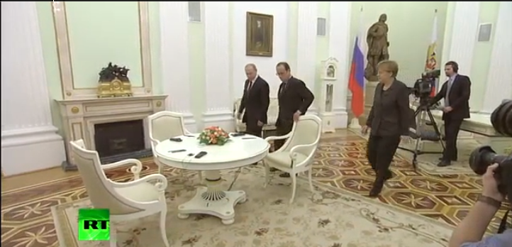 Μετά από ένα 5ωρο “ουσιαστικών και επικοδομητικών ” συζητήσεων με τον Vladimir Poutine οι François Hollande και Angela Merkel εγκατέλειψαν την Μόσχα την Παρασκευή 6 Φεβρουαρίου χωρίς να δεσμευτούν σε μια ανακωχή στην ανατολική Ουκρανία αλλά οι εργασίες τους θα συνεχιστούν.