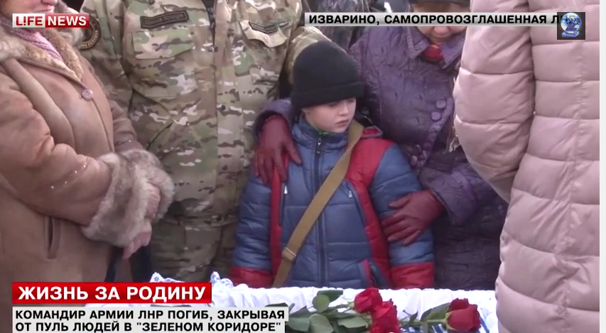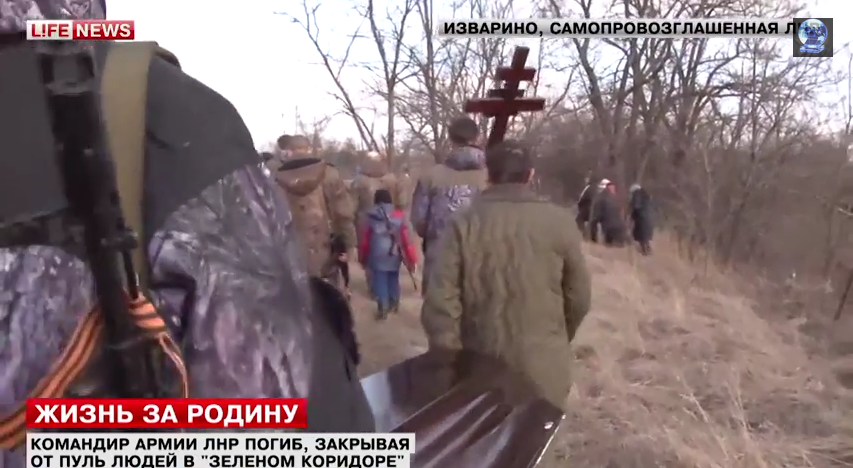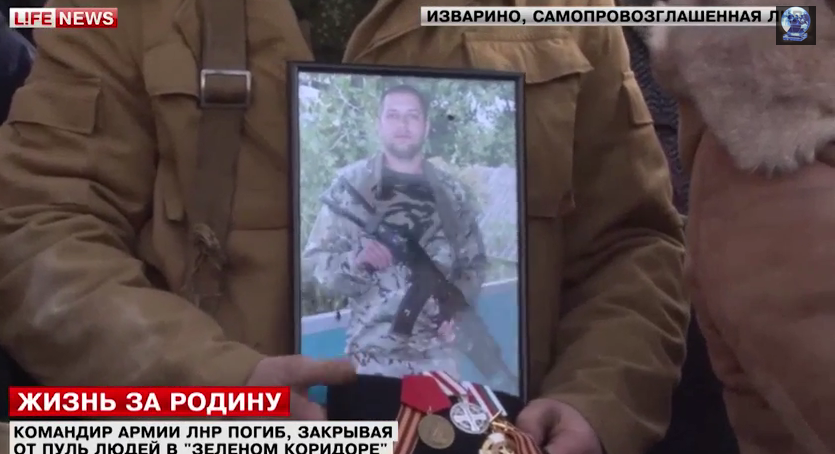 Στην αυτοανακηρυχθείσα Λαική Δημοκρατία του Lugansk ένα βουβό πλήθος και συναγωνιστές είπαν το τελευταίο αντίο στον διοικητή στρατονομίας της περιοχής του Krasnodon. Ο διοικητής μετείχε διάνοιξης και επιτήρησης ανθρωπιστικού διαδρόμου για την εκκένωση του χωριού Chernukhin περιοχής Ντεμπάλτσεβο.