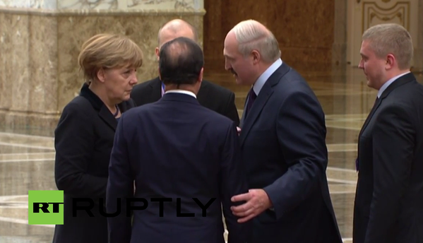 Kατά την άφιξη του Ποροσένκο στο Παλάτι της Ανεξαρτησίας στο Minsk ένας δημοσιογράφος του κραύγασε ” γιατί κ. Porochenko ο στρατός σας βομβάρδισε πολίτες ;”O Poroshenko δεν απάντησε.(RT 11/02/20150)