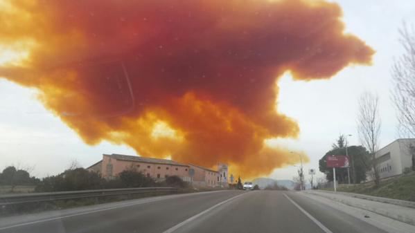 Ως συνέπεια μιας έκρηξης σε χημικό εργοστάσιο στην Igualada στην Β Ισπανία ένα τεράστιο πορτοκαλί σύννεφο εξαπλώθηκε πάνω από πολυάριθμα χωριά κοντά στην Βαρκελώνη.