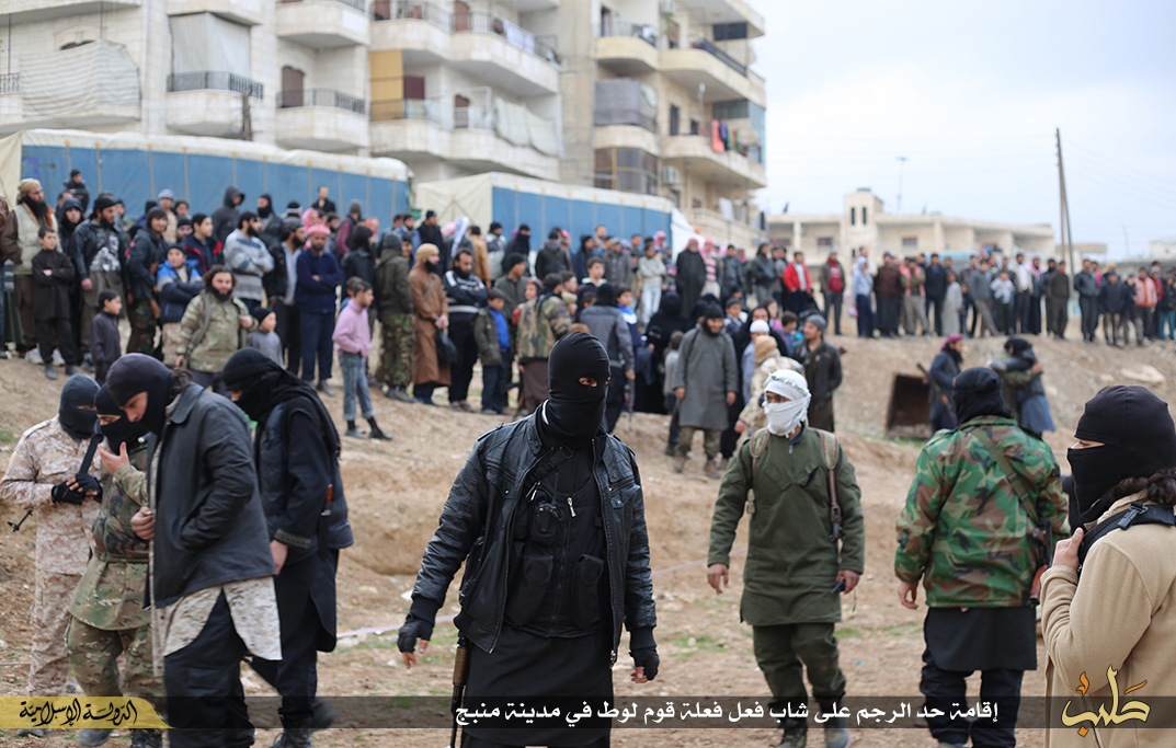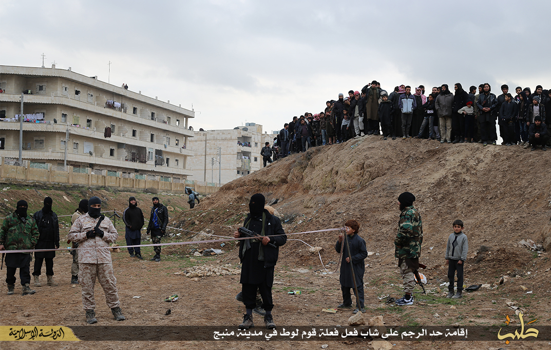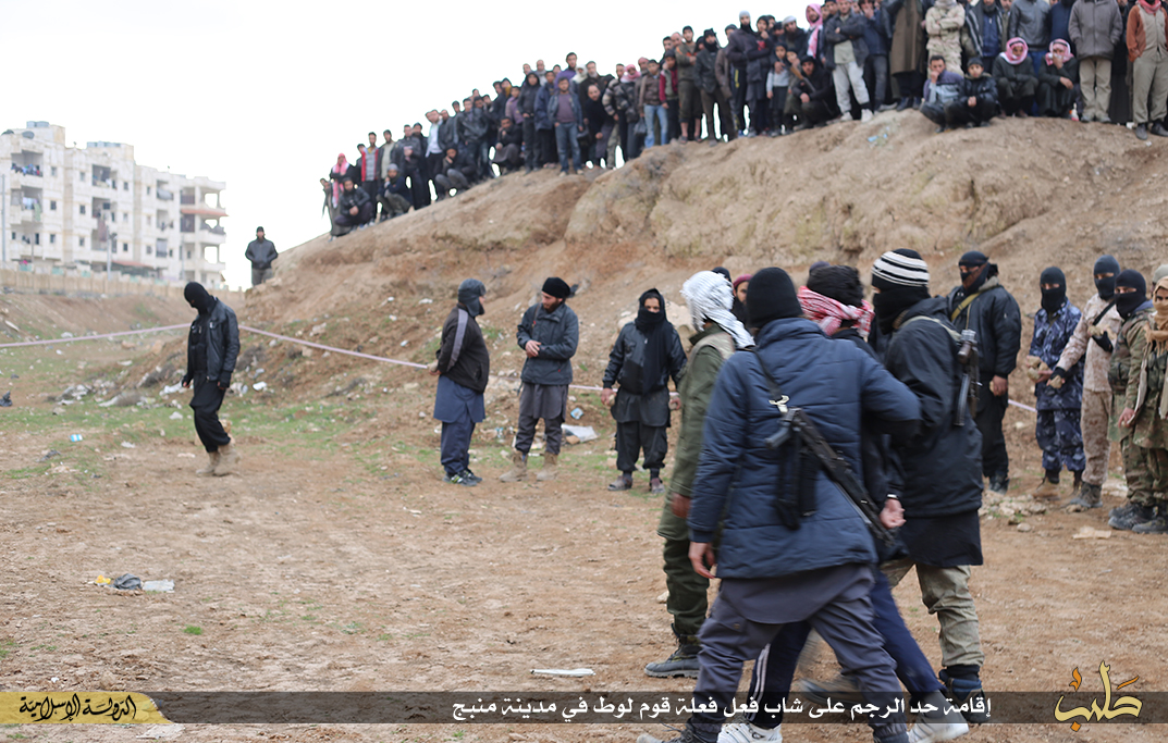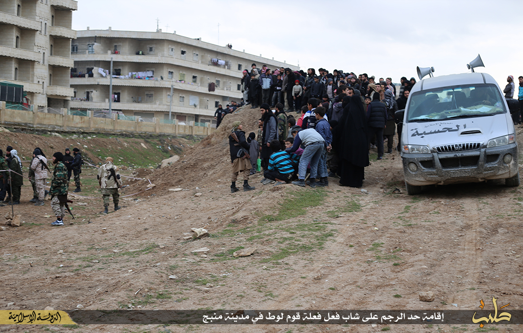 Λογαριασμοί ισλαμιστών ανάρτησαν φωτογραφίες από λιθοβολισμό νεαρού άνδρα στην επαρχία Χαλεπίου.