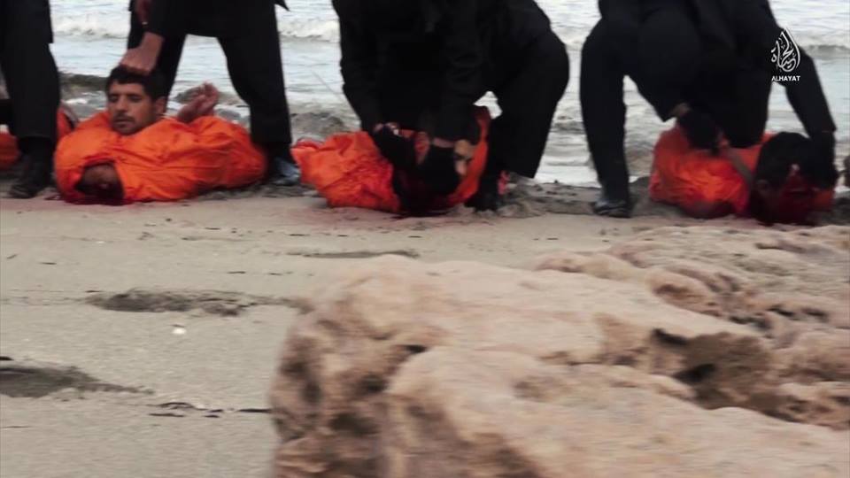 Φωτογραφίες δημοσιοποιήθηκαν στο περιοδσικό της ISIS Dabiq.Είχαν απαχθεί από την οργάνωση στρατιώτες του χαλιφάτου που έχει δηλώσει υποταγή στην ISIS από την πόλη Σύρτη της Λιβύης. Οι άνθρωποι ήταν εργάτες και απασχολούνταν στον χώρο των κατασκευών. (Coptstoday 15/2/15)