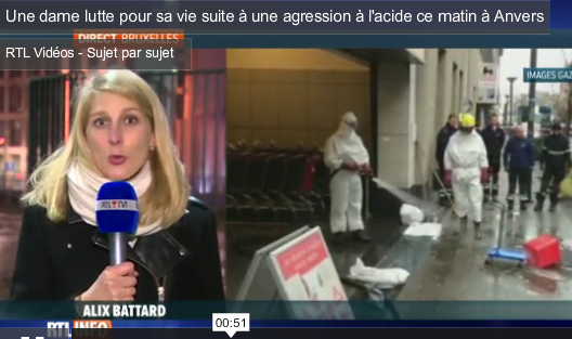 Η Marina Τ, η 52 χρονη γυναίκα που δέχθηκε επίθεση με οξύ στο πρόσωπο την Παρασκευή το πρωί μπροστά από σούπερ μάρκετ Delhaize στην Αμβέρσα βρίσκεται σε κώμα. Ο σύζυγός της Frank V. ξεσπάει “είναι φοβερό να βλέπω σε μια τέτοια κατάσταση τη γυναίκα μου “.
