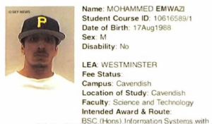 Ο σχιζοφρενής ισλαμιστής χρησιμοποίησε τον κωδικό αριθμό της φοιτητικής του κάρτας, όταν παρακολουθούσε μαθήματα τεχνολογίας υπολογιστών στο Πανεπιστήμιο Westminster του Λονδίνου.