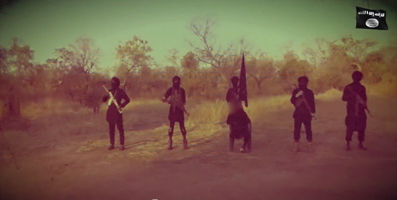 Στον χώρο της τελετουργικής ανθρωποθυσίας υπάρχει 5μελές εκτελεστικό απόσπασμα.Ο ένας κρατάει σημαία της Βοκο Ηaram .Όλοι είναι μασκοφόροι.Είναι ντυμένοι στα μαύρα. Στο κέντρο βρίσκεται ένας ανάπηρος που έχει χάσει προφανώς σε μάχες το δεξί πόδι και φαίνεται να είναι ο αρχηγός.