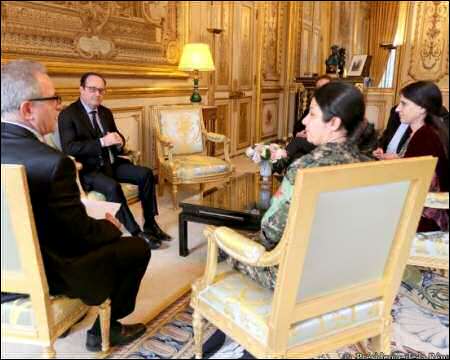 Τόσο το κουρδικό κόμμα – PYD- όσο και οι δυνάμεις άμυνας YPG- φιλοξενήθηκαν στο Παρίσι και έγιναν δεκτοί Προεδρικό Μέγαρο από τον ύπατο αρμοστή της Συρίας, Φρανσουά Ολλάντ . Για να γίνουν αποδεκτοί πολιτικά, προαπαιτούμενο ήταν ο συντονισμός τους με τις ”συμμαχικές δυνάμεις” σε Kobani και αλλού. Η συνπρόεδρος του συριακού κουρδικού κόμματος Asya Abdullah είπε συγκεκριμένα ότι η νίκη στο Κομπάνι είναι προφανής και ότι τώρα οι διεθνείς δυνάμεις θα πρέπει να επαναπροσεγγίσουν το Κουρδικό Ζήτημα. Σε απάντηση δημοσιογράφου η Abdullah είπε ότι ο Hollande την συνεχάρη και ότι θα συνεχίαει τις επαφούς του με τους αξιωματούχους του PYD….