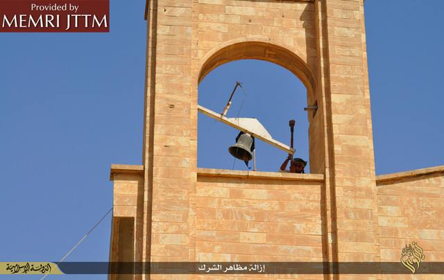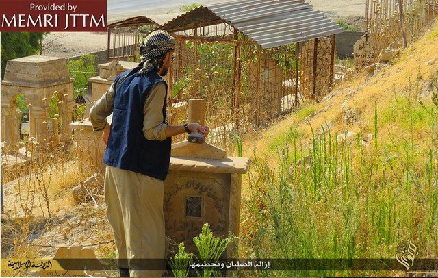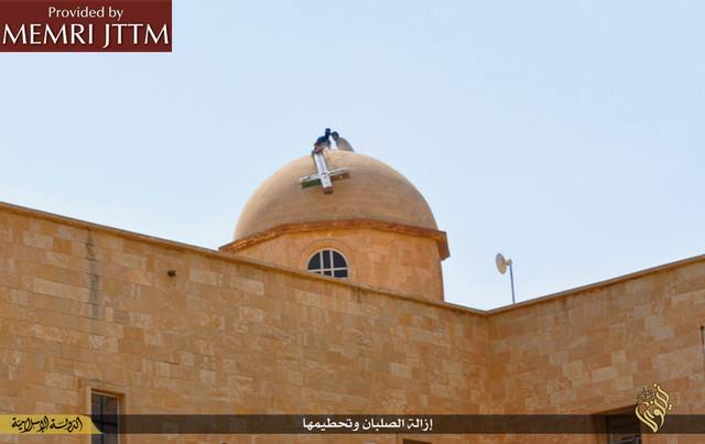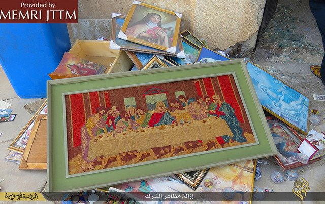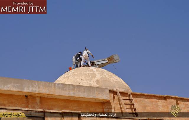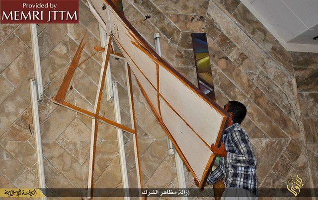 Οι εικόνες της ιεροσυλίας και της καταστροφής προέρχονται από το Middle East Media Research Institute (MEMRI) και παρουσιάζουν τις τελευταίες προσπάθειες του Ισλαμικού Κράτους να καθαρίσουν το χαλιφάτο από την χριστιανική πολιτιστική κληρονομιά και κάθε ιστορική αναφορά.Η ISIS θεωρεί ότι οι αρχαιότητες και η αναπαραστατική τέχνη είναι ειδωλολατρεία και καταπατά την φονταμενταλιστική ερμηνεία του ισλαμικού νόμου.Ο Διευθυντής του Directeur MEMRI Steven Stalinsky δήλωσε: «Αυτοί δεν εφαρμόζουν τίποτε άλλο παρά την ιδεολογία τους και ξεφορτώνονται εκκλησίες και μειονότητες. Αυτό είναι το Ισλαμικό Κράτος και δεν περισσεύει θέση για κανένανα άλλον. »