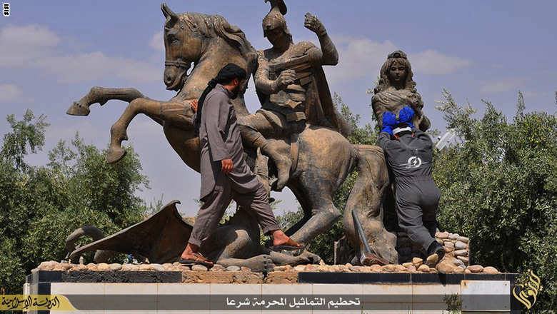Τα μέλη της ISIS κατεδαφίζουν αγάλματα της Παναγίας και τα σπάνε.