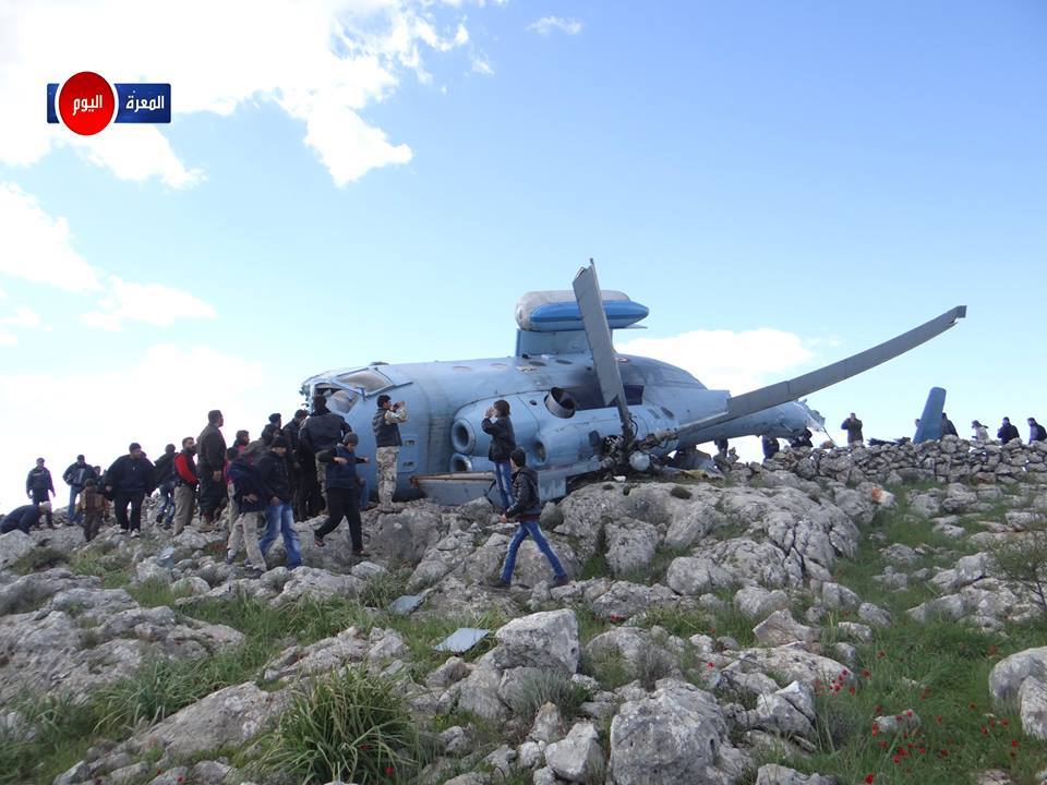 Πτώση συριακού στρατιωτικού ελικοπτέρου στην περιφέρεια του Ιντλίμπ στη Συρία.Η περιοχή ελέγχεται από την jabhat al Nusra.To ελικόπτερο συνετρίβη ενώ θα έκανε αναγκαστική προσγείωση λόγω τεχνικής βλάβης που παρουσίασε κοντά στο χωριό Deir Sinbel σύμφωνα με μια εκδοχή. Άλλη πηγή αναφέρει ότι αυτόπτης μάρτυρας δηλώνει ότι έγινε κανονικά η προσγείωση για να διαφύγει το πλήρωμα μέσα από τους αγρούς και να φτάσουν στο χωριό.Περικυκλώθηκαν εντοπίστηκαν. Άλλο ελικόπτερο πετούσε από πάνω και προσπαθούσε να τους σώσει. Άλλες πληροφορίες διατείνονται ότι το ελικόπτερο καταρρίφθηκε από εχθρικά πυρά.