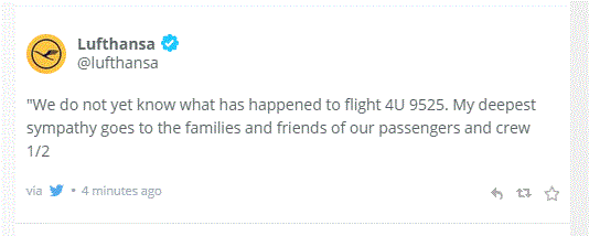 Η Lufthansa δηλώνει ότι δεν γνωρίζει τι συνέβη στην πτήση και περιορίζεται στο να εκφράσει τη συμπάθεια της στις οικογένειες και τους φίλους των επιβατών και του πληρώματος.