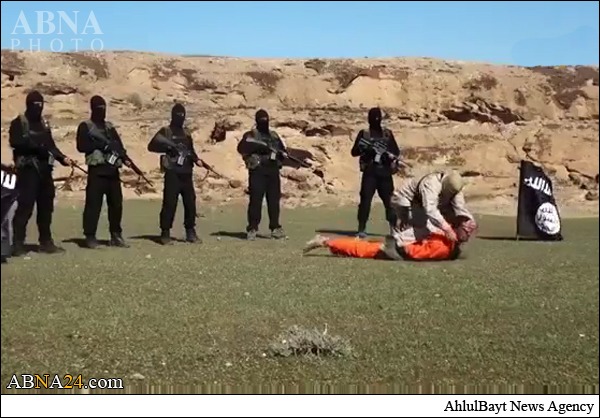 H ISIL το Ισλαμικό Κράτος αποκεφάλισε σήμερα Πέμπτη έναν ιρακινό στρατιώτη. Το θύμα έχει μεταφερθεί στην ύπαιθρο.Πίσω του καραδοκεί το πενταμελές εκτελεστικό απόσπασμα.Ο δήμιος είναι κουκουλοφόρος ενώ ο μελλοθάνατος είναι στα γόνατα καθηλωμένος και φέρει πορτοκαλί φόρμα στα πρότυπα του Γκουαντάναμο.