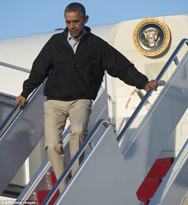 O Πρόεδρος των ΗΠΑ, επιστρέφοντας το απόγευμα της Κυριακής από week end στη Φλόριντα για γκόλφ με μεγιστάνες πετρελαικών εταιριών, γελοιοποιήθηκε κατά την κάθοδό του από το αεροσκάφος Air Force One.