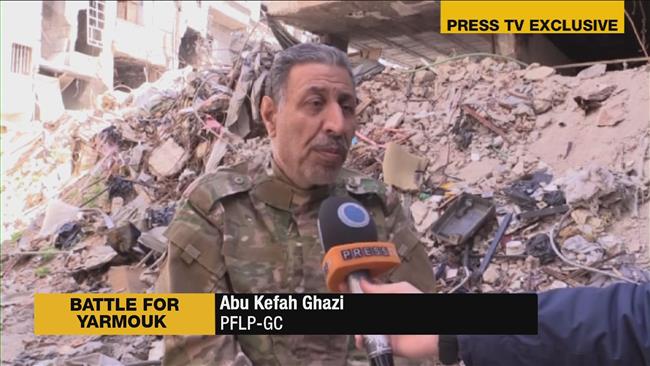 “Στο Yarmouk, υπάρχουν πολλές διαφορετικές οργανώσεις.Αυτές δεν θέλουν λύση. Η al Nusra είναι αυτή που διευκόλυνε την πρόσβαση στο Ισλαμικό Κράτος στην περιοχή Hajar al-Aswad επί του καταυλισμού” δήλωσε ο Abou Kefah Ghazi, μέλος του λαικού Μετώπου για την Απελευθέρωση της Παλαιστίνης Γενική Διοίκηση (FPLP -GC) σε συνέντευξή του στο Press TV μέσα στο στρατόπεδο το Σάββατο.