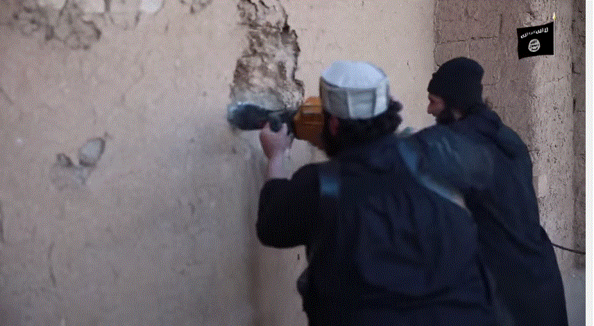 Η Daesh διακίνησε στα μέσα κοινωνικής δικτύωσης το Σάββατο βίντεο όπου εμφανίζονται μέλη της εξοπλισμένα με βαριοπούλες ,αλυσοπρίονα,εκσκαφείς κλπ να καταστρέφουν τους αρχαιολογικούς θησαυρούς.