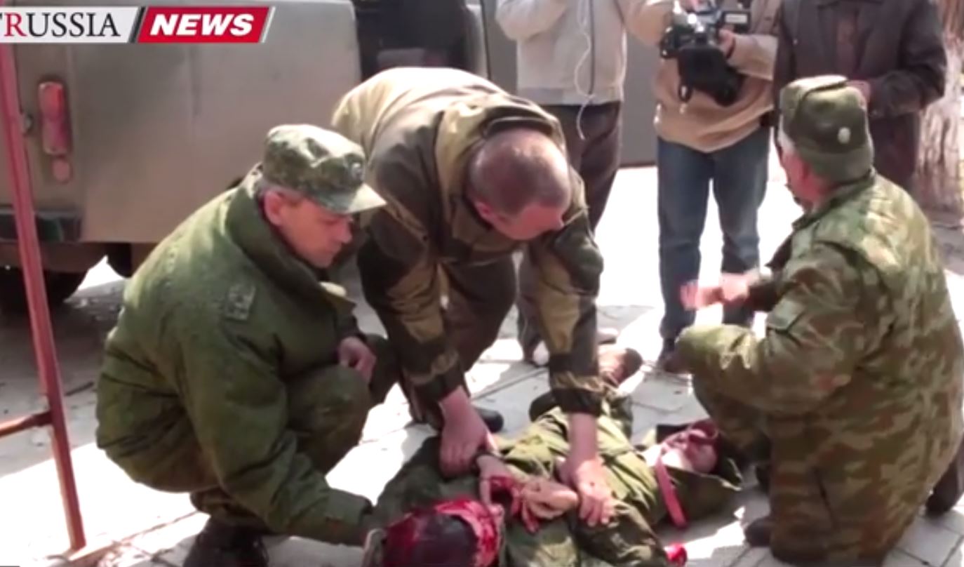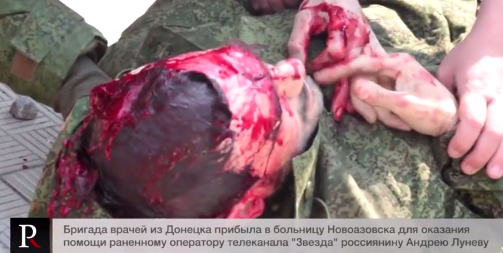 Όμως νωρίτερα σήμερα, ο δημοσιογράφος του ρωσικού καναλιού Zvezda, Andrey Lunev ανατινάχθηκε σε ένα συρματόπλεγμα κοντά στο Shirokino. Ο Lunev υπέστη σοβαρά τραύματα στο κεφάλι και τα πόδια.