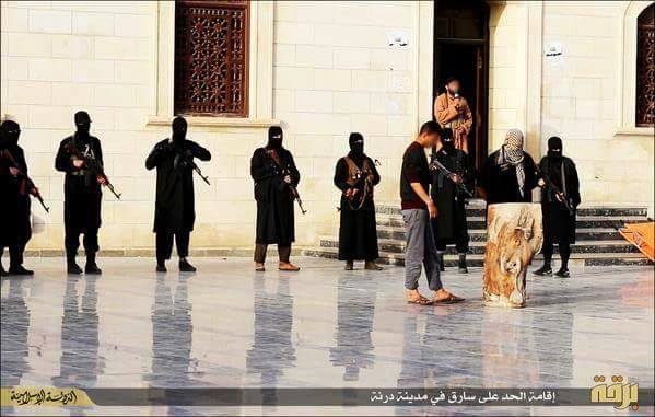 To Ισλαμικό Κράτος ενώ δεν έχει κοπάσει ακόμη το σοκ από την τελετουργική σφαγή και την ομαδική εκτέλεση περί των 30 χριστιανών Αιθιόπων στη Λιβύη δημοσιοποίησε φωτογραφίες από ακρωτηριασμό χεριού ενός νεαρού.