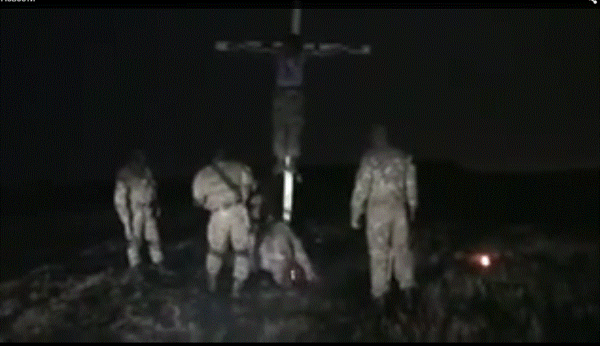 Στο βίντεο διακρίνονται οι παραστρατιωτικοί του τάγματος της Αζοφικής να σέρνουν δεμένο το θύμα τους στο έδαφος και να το καθηλώνουν σε ένα σταυρό.Τον σταυρό τον εδράζουν σε μια βάση η οποία αργότερα φλέγεται και ακούγονται μέσα από αυτήν την φωτιά οι κραυγές του καταδικασμένου ανθρώπου…..Οι νεορώσοι χάκερ στους οποίους πρώτα κοινοποιήθηκε το βίντεο με την θηριωδία του τάγματος της Αζοφικής σχολίασαν ότι “Αυτό δεν θα μας κάνει να φοβηθούμε ούτε εμάς ούτε τις δυνάμεις της Νέας Ρωσίας.