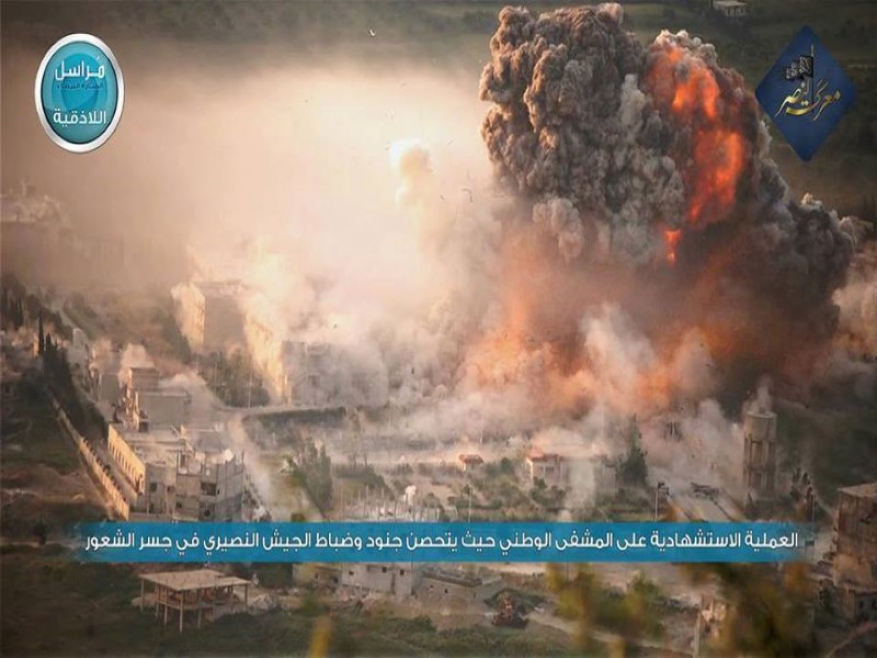 Oι τζιχαντιστές ψευδεπίγραφοι αντάρτες της αλ Νούσρα παρακλάδι της el-Qaëda εισέβαλαν στο νοσοκομείο της πόλης Jisr al-Choughour όπου επί σειρά ημερών ήταν παγιδευμένοι 250 εκ των οποίων 150 σθεναροί φαντάροι του συριακού στρατού.Ήταν αποκλεισμένοι μετά την πτώση της πόλης πριν από 2 εβδομάδες αναφέρει ΜΚΟ.