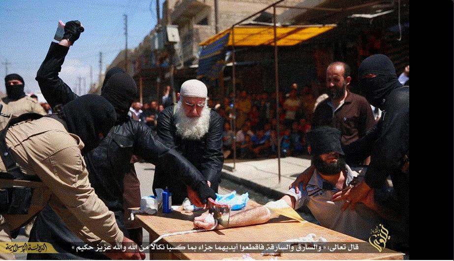 Στην πόλη Νινευή του Ιράκ γίνεται ο δημόσιος ακρωτηριασμός των χεριών 2 ατόμων που κατηγορούνται για κλοπή.ένας σείχης προίσταται και επιβλέπει τη σκηνή.Τα θύματα είναι καθηλωμένα και ακινητοποιημένα και ο δήμιος με μπαλτάς τους κόβει τα χέρια στο ύψος του καρπού.