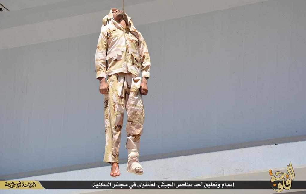 Δεν είναι η πρώτη φορά που το Ισλαμικό Κράτος κρεμάει τα πτώματα των νεκρών ανατιπάλων του από γέφυρες σε κεντρικάς σημεία πόλεων που έχει καταλάβει στο Ιράκ.Προηγήθηκε διαπόμπευση του στρατιωτικού με πομπή αυτοκινήτων στους δρόμους της πόλης καθ΄οδόν προς την εκτέλεση.Ο όμηρος συνοδεύεται από μασκοφόρους.