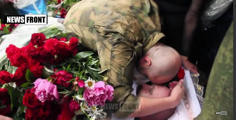 Tην ίδια στιγμή στο Λουγκάνσκ 2.500 κόσμος αψήφισε το φόβο του πολέμου και αποχαιρέτησε τον διοικητή Alexei Mozgovoy που σκοτώθηκε σε ενέδρα πριν 2 ημέρες.Η πάνδημη κηδεία ήταν κοινή και με αυτήν της εκπροσώπου τύπου του Άννας και των 2 σωματοφυλάκων του που σκοτώθηκαν στο ίδιο επεισόδιο.Υπό το σεμνό χειροκρότημα της βροχής έφυγε ο Αλεξέι………