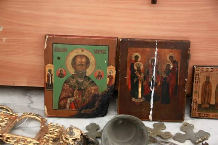Κάποια από τα ιερά αντικείμενα που σίλησαν οι ισαλμιστές της αλ Νούσρα είχαν υποστεί φθορές.Εικόνες μισοκαμμένες και με βγαλμένα τα μάτια αγίων ή σπασμένα αντικείμενα.