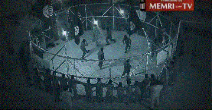 Τους ποδοπατάνε,τους υποβάλουν σε ξυλοδαρμούς με βέργες ενώ κάνουν ακροβατικά;τους βάζουν στην αρένα να μάχονται. Εκπαιδεύονται επίσης στα όπλα και στην πάλη σώμα με σώμα.Eνδιάμεσα υπάρχει το μήνυμα “η επέκταση του Χαλιφάτου.”